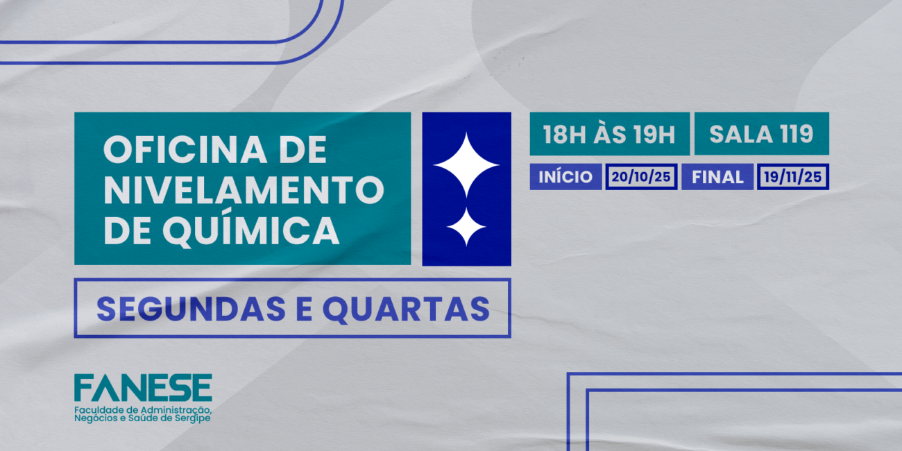 A Faculdade de Administração, Negócios e Saúde de Sergipe (Fanese), por meio do Núcleo de Pesquisa e Extensão (NUPEF), abriu as inscrições para a Oficina de Nivelamento em Química, nesta segunda-feira (13). A iniciativa é voltada para alunos de todos os cursos da instituição e as inscrições podem ser realizadas de forma gratuita pelo Sympla.